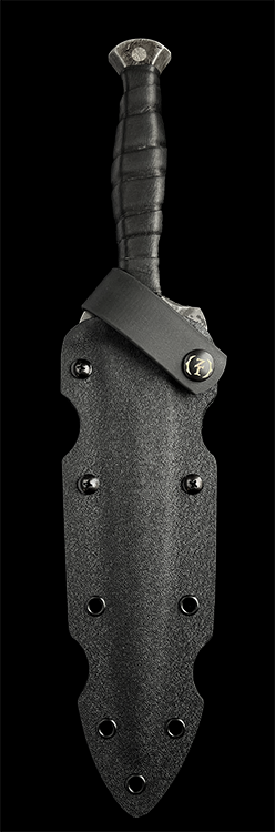 The Last Word is Zombie Tools take on the classic Fairbairn-Sykes knife. It is crafted from 80CRV2 steel with 6160 aluminum handle slabs. The Last word comes standard with a black kydex sheath and leather belt loop.